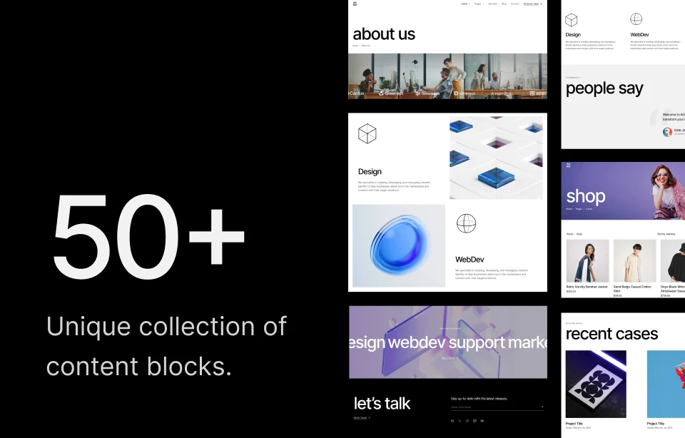 All our demos are unique and mix and match different elements that can be swapped around between them.